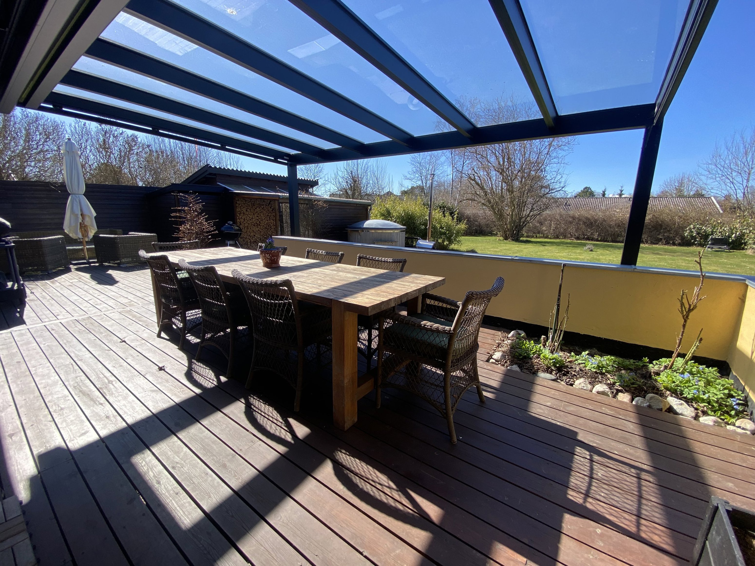 Haven er indrettet med samme sans for stemning og afslapning. Et hyggeligt loungeområde, smuk beplantning og et vildmarksbad skaber rammerne om stille morgener, varme sommeraftener og øjeblikke under åben himmel.