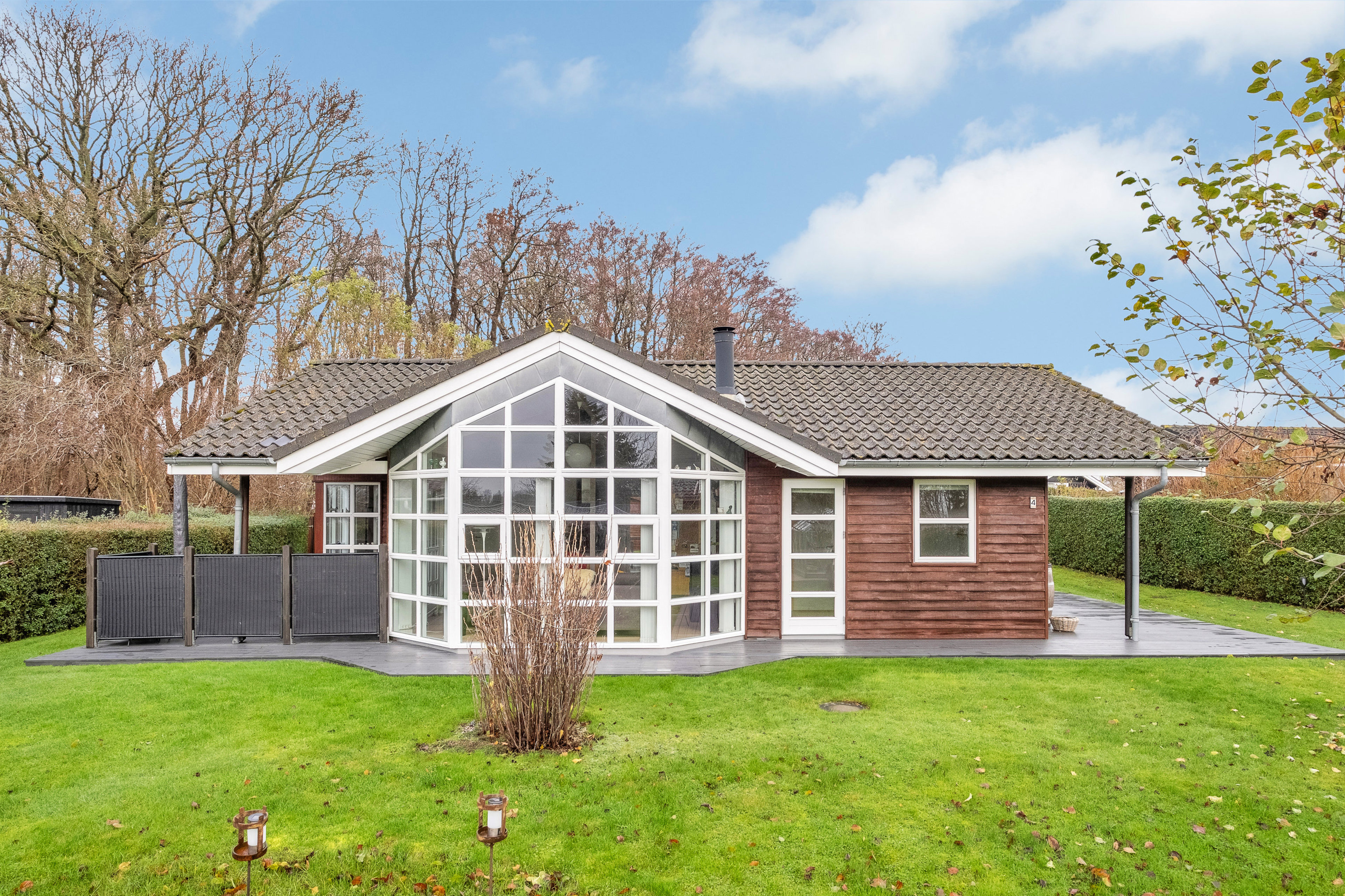 Skovgrænsen i baghaven er noget helt særligt. De nuværende ejere bruger mange timer på terrassen og i stuen med udsigt til rådyr, egern og et rigt fugleliv. Lærketræs terrassen omslutter huset og giver jer sol hele dagen – morgensol mod øst, plads til afslapning mod syd og hyggelige aftener på den vestvendte del, når dagens sidste stråler rammer træerne i skovkanten.