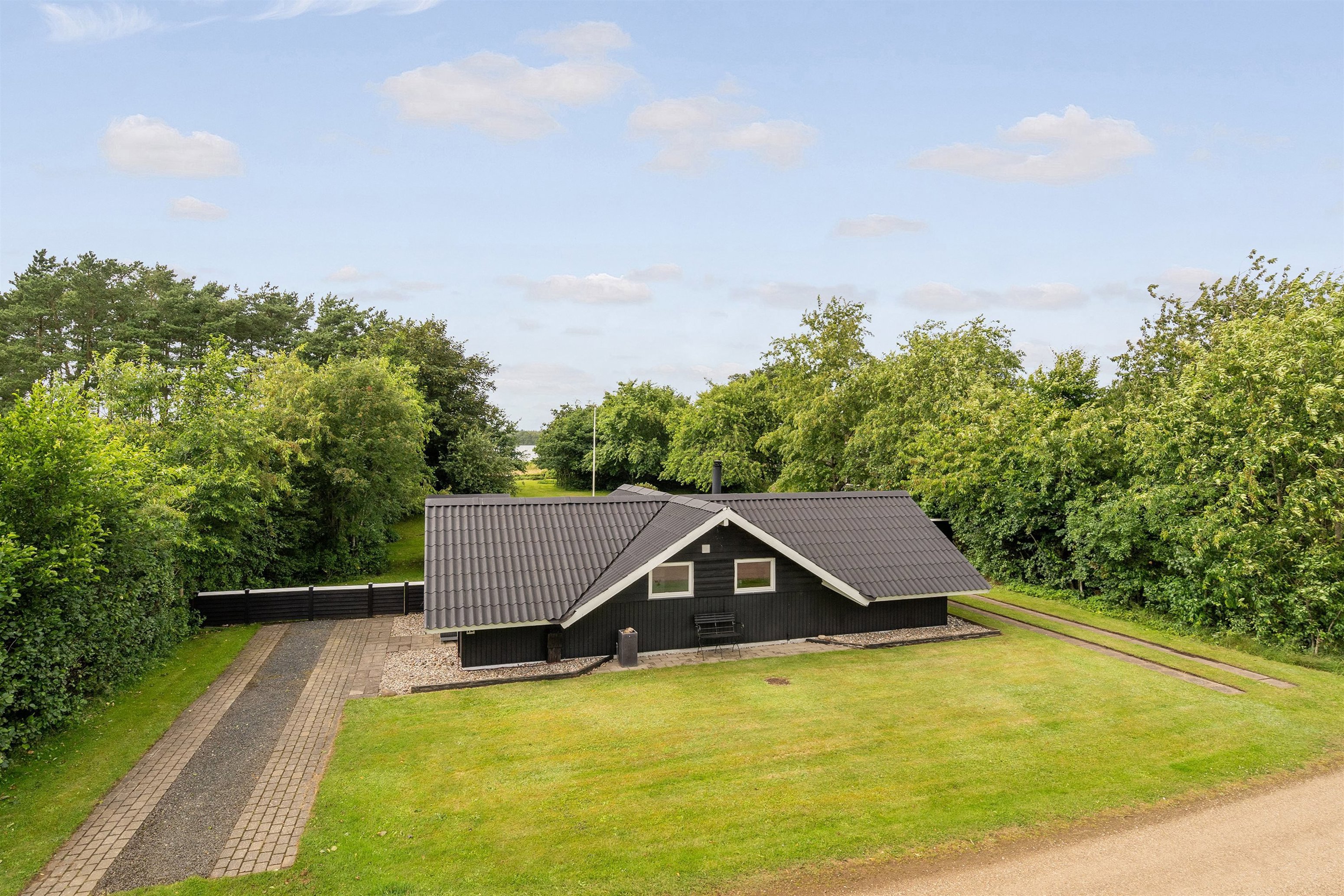 Huset ligger tilpas tilbagetrukket på grunden, så du har en dejligt privat grund. Sommeren kan nydes på