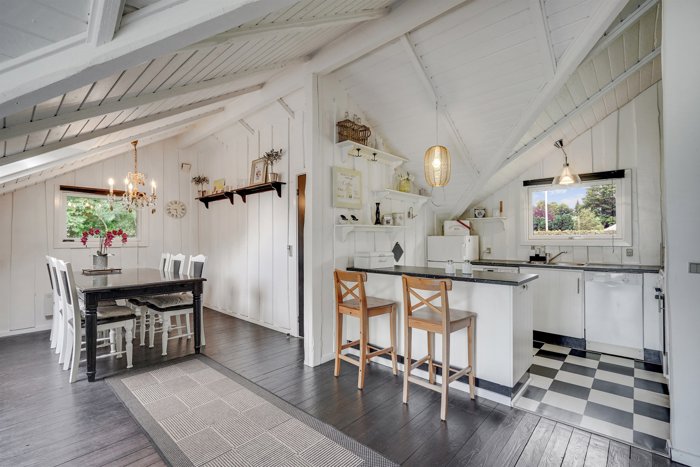 Huset er velindrettet med dejligt stort køkken/alrum hvor du fra de store vinduespartier kan nyde udsigten