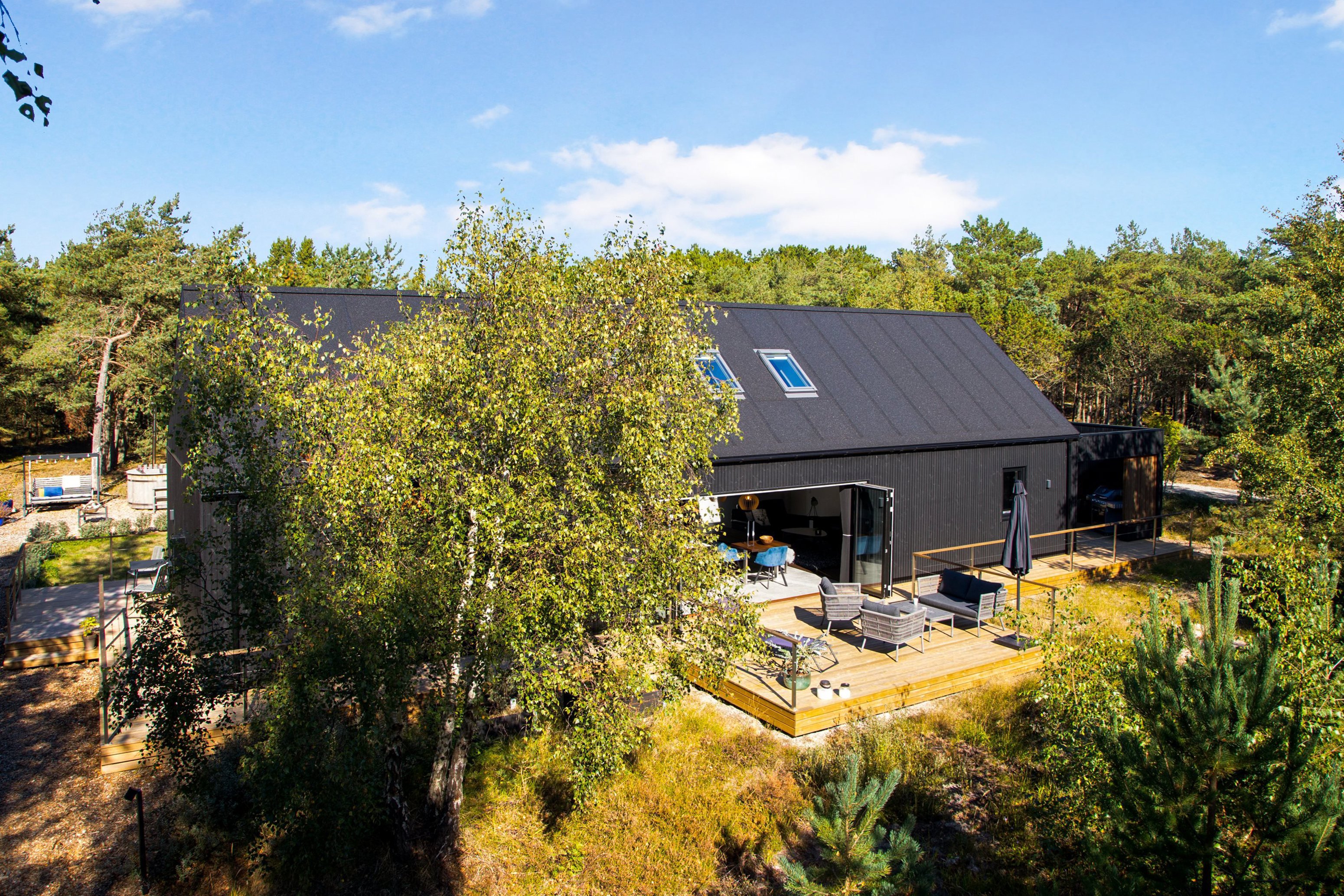 Et fritidshus, der skiller sig ud med en gennemført og stilren arkitektur, hvor sorte materialer, rene linjer og gennemtænkte løsninger går op i en højere enhed. Huset er opført i 2019 og fremstår moderne, indbydende og særdeles velindrettet med hele 119 m² bolig samt et flot anneks på 33 m². Sammen med den store dobbelte grund på 3.388 m² er her en sjælden kombination af kvalitet, luft og privatliv.