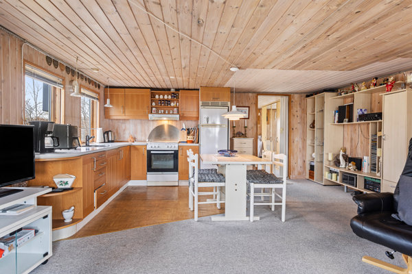 Selve huset er på 30 m² og rummer i dag en stue med integreret køkken, et stort soveværelse, et mindre værelse samt et badeværelse. Hertil kommer en hyggelig udestue med en lille smule havkig. Boligen fremstår som et sted med masser af potentiale for den køber, der kan se mulighederne og ønsker at sætte sit eget præg på rammerne. Her er tale om en ejendom, der trænger til en kærlig hånd, og som derfor appellerer til den kreative køber med blik for beliggenhed, stemning og fremtidige muligheder.