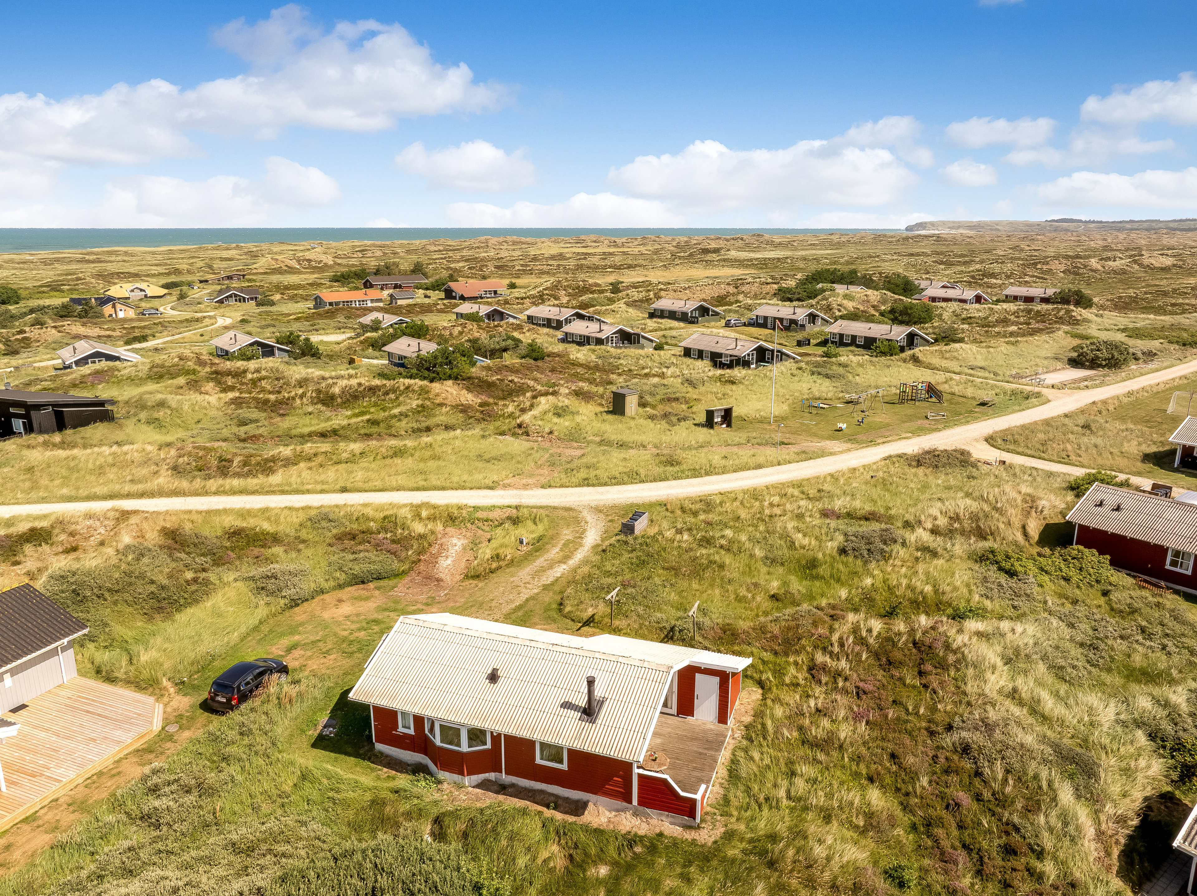 Grunden er på 225 kvm, da alt omkringliggende ejes af grundejerforeningen. Dette gør udendørsarealerne nærmest vedligeholdelsesfrie.