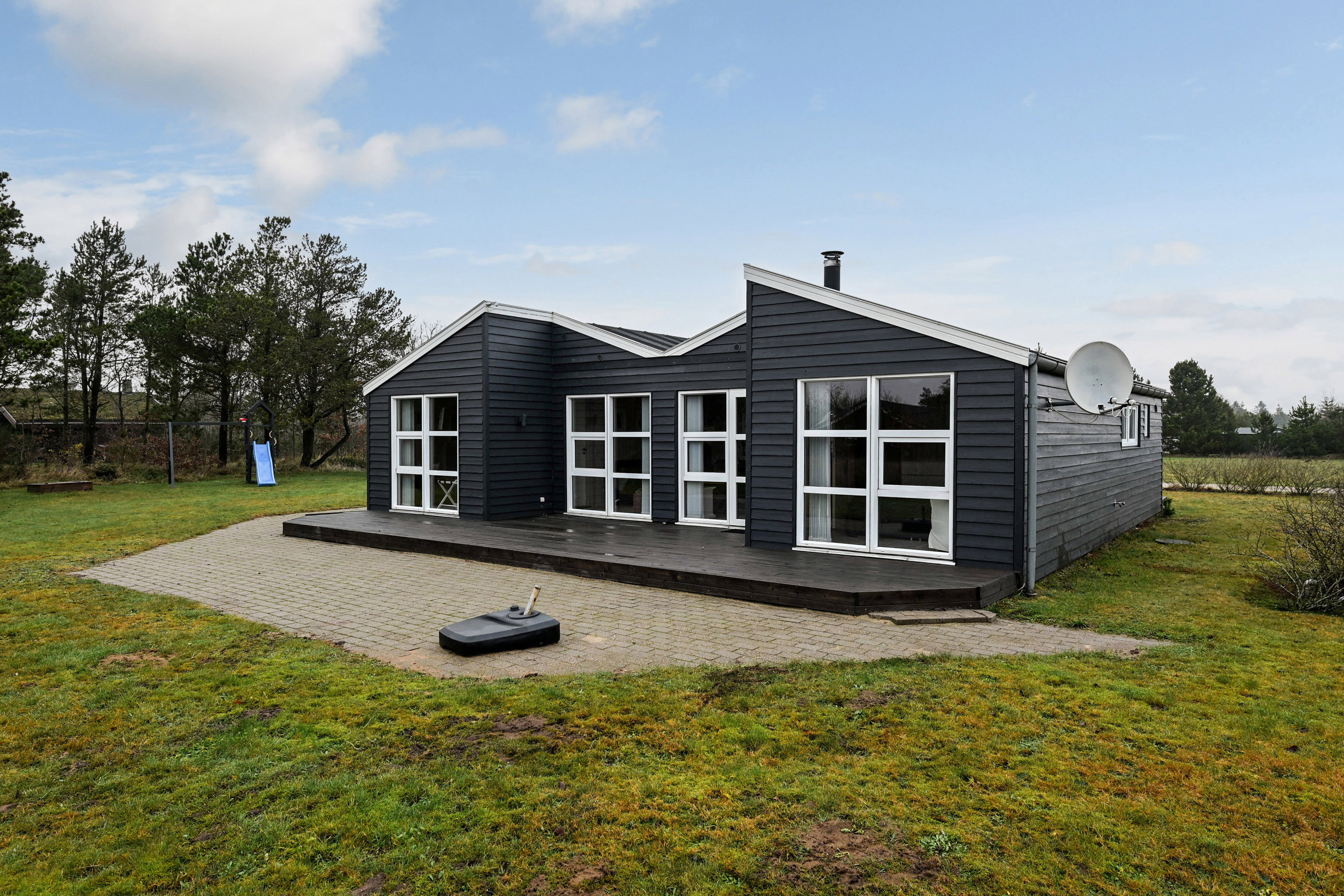 Huset er opført i 2005 og er løbende moderniseret med sans for stil og funktionalitet. Det er udstyret med et moderne køkken fra 2022 med alle nødvendige faciliteter – inkl. isterningemaskine og koldt vand direkte fra køleskabet, varmepumpe med varme, køling og luftrensning, moderne møbler i stue og spisestue, TV i alle soveværelser og lynhurtigt 1000/1000 Mbit internet. Der er ladestander til elbiler, gode senge, mørklægningsgardiner og ventilatorer i alle rum, legeplads og en hyggelig shelter i haven.