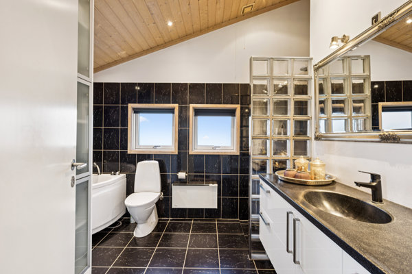 Stuen prydes af skønne lysindfald, og på de kølige aftener kan I oplagt tænde den stemningsskabende brændeovn. Foruden opholdsrummet byder boligen på tre værelser, samt to badeværelser, hvoraf det ene har brus, mens det andet byder på bruseniche, spabad og plads til installation af vaskefaciliteter.