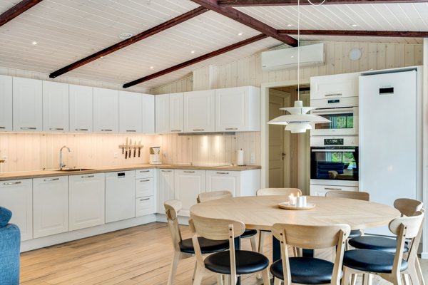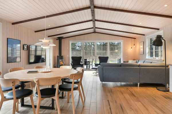 Husets hjerte er det åbne opholdsrum, hvor køkken og stue smelter sammen i et indbydende samlingspunkt for familie og venner. I kan synke ned i sofaen med en god bog eller et glas vin, mens ilden knitrer i baggrunden. I direkte forlængelse ligger det imponerende aktivitetsrum, som uden tvivl bliver et hit blandt både børn og voksne. Her kan I udfordre hinanden ved det 7-fods billardbord, tage en hurtig dyst i airhockey eller samle familien til en turnering i bordfodbold – feriens grin og gode minder starter her.