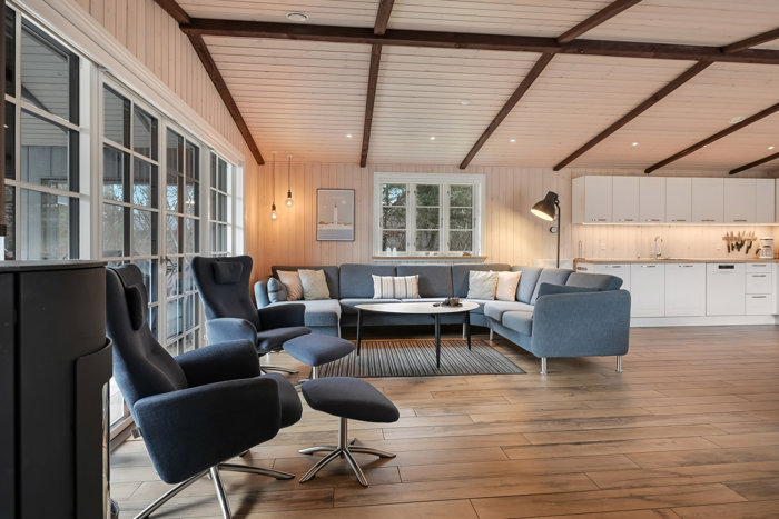 Boligen rummer hele 170 velindrettede kvadratmeter, opført i smukke kvalitetsmaterialer og med en gennemført, moderne indretning. De lyse farver og de store vinduespartier inviterer naturen indenfor og skaber en skøn, rummelig atmosfære med masser af lys. Her er der tænkt på komfort året rundt – blandt andet med aircondition, så indeklimaet altid er behageligt, selv på varme sommerdage, samt brændeovn, der spreder hygge og varme på kølige aftener.