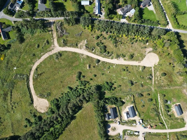 Grundene er på 1.403 – 3.691 m² og der er etableret indkørsel ind til hver grund.
