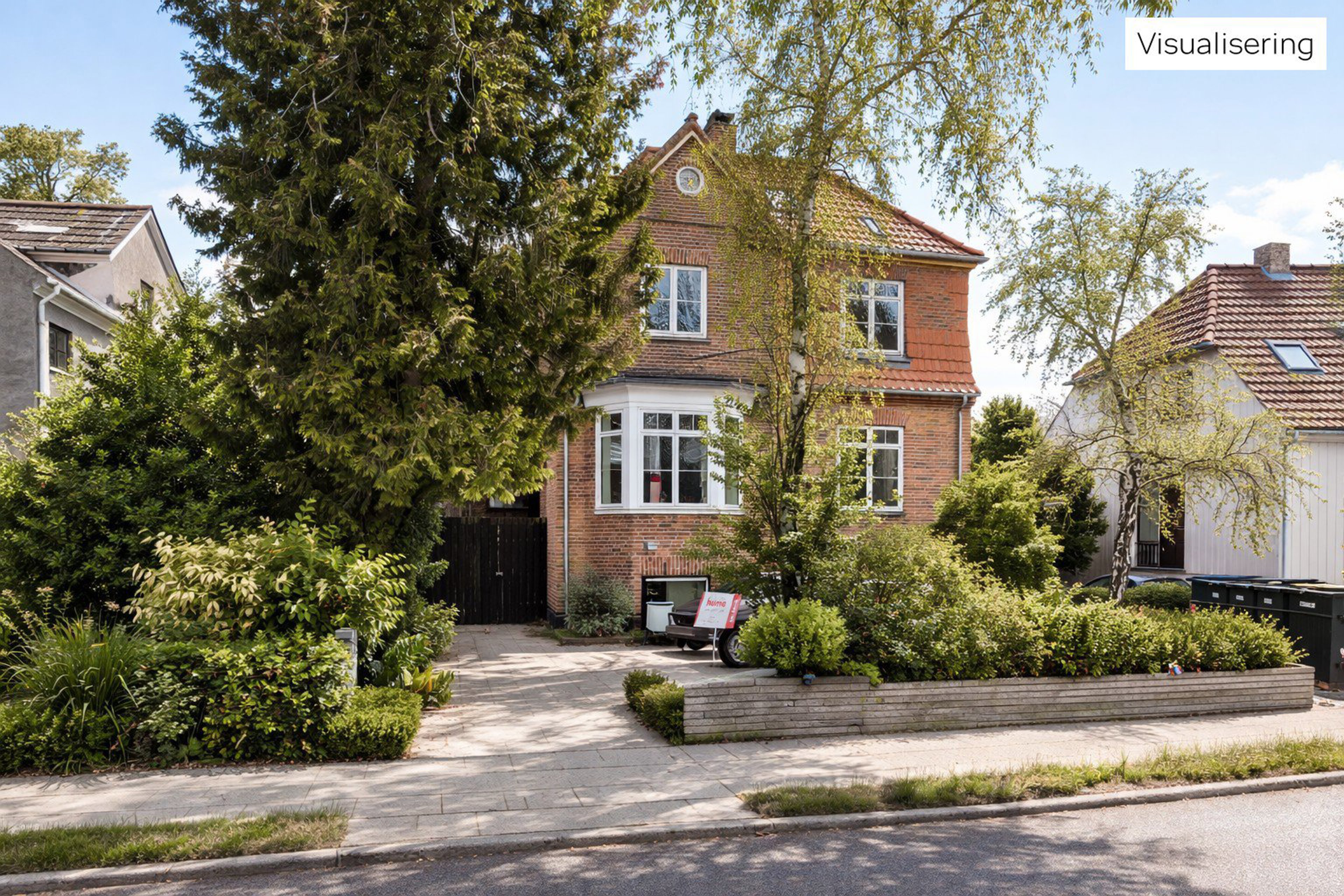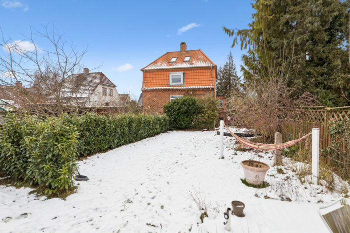Det er i en charmerende murermesterejendom opført i 1925, at I overtager de to øverste etager, og heroppe er lysindfaldet helt fantastisk. Bygningens tag blev skiftet for bare fire år siden, og bevæger I jer ned i niveau med gaden, finder I en stor, skøn have, der er delt op på midten med hæk og busk, så den er privat. Her har I ligeledes en hyggelig, overdækket terrasse og et praktisk skur.