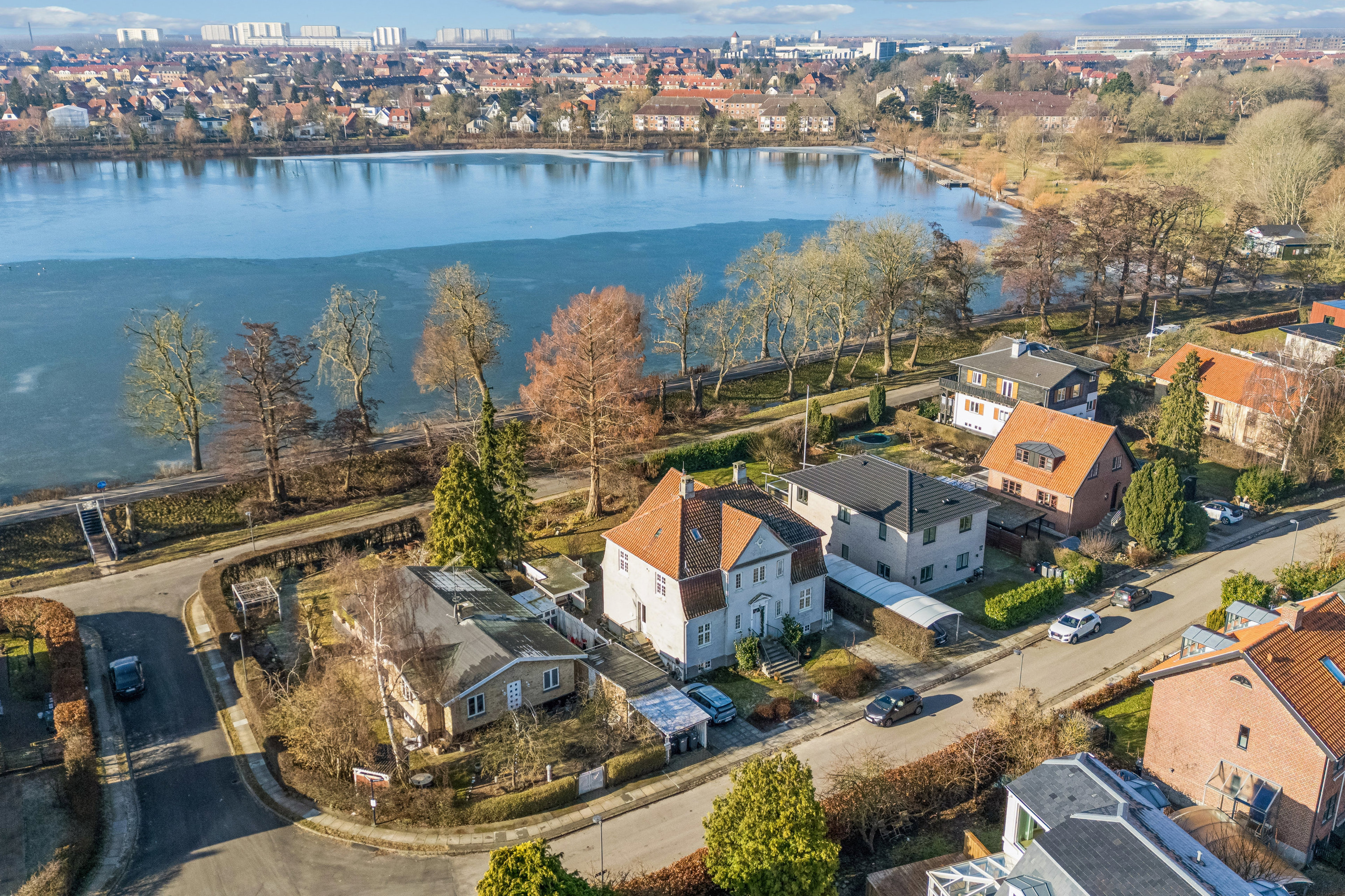 En beliggenhed som denne ser man sjældent. Vi udbyder nemlig en villalejlighed med direkte udsigt til Damhussøen. Den velholdte lejlighed ligger desuden i stueplan, og indretningen byder på fine herskabelige detaljer, mens boligen med sine 114 kvm passer godt til både parret, solisten og børnefamilien.
