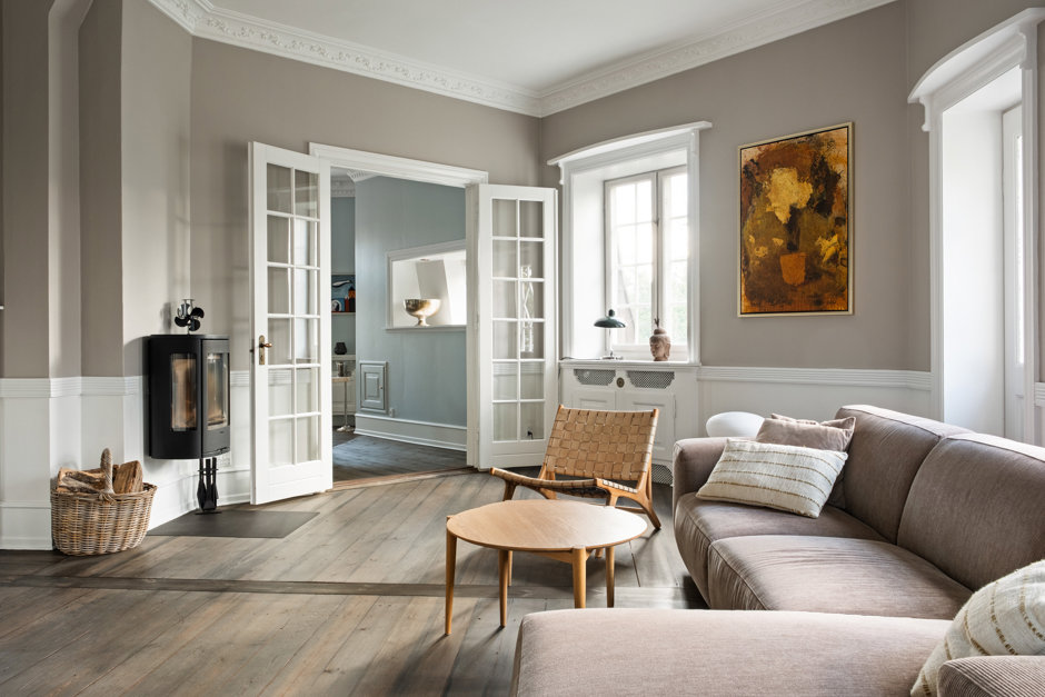 * To store stuer, hvoraf den ene er med brændeovn og udgang til altan