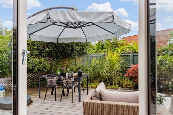 Husets hjerte er det store, lyse køkken-alrum, hvor der er god plads til både madlavning og samvær. Fra alrummet er der udgang til to terrasser: mod øst, hvor morgen-/formiddagskaffen kan nydes i solens stråler, og mod vest, hvor eftermiddags-/aftensolen skaber den perfekte ramme om middage og hyggestunder. Haven er lukket og privat, så intet deles med naboen.