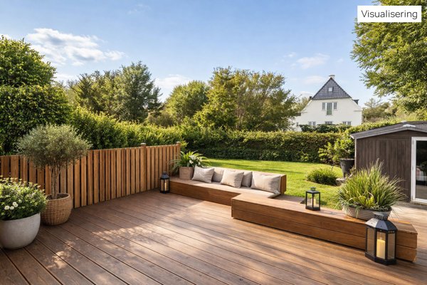 Lys villalejlighed (lodret skel - "baghuset") med egen have på stille beliggenhed
