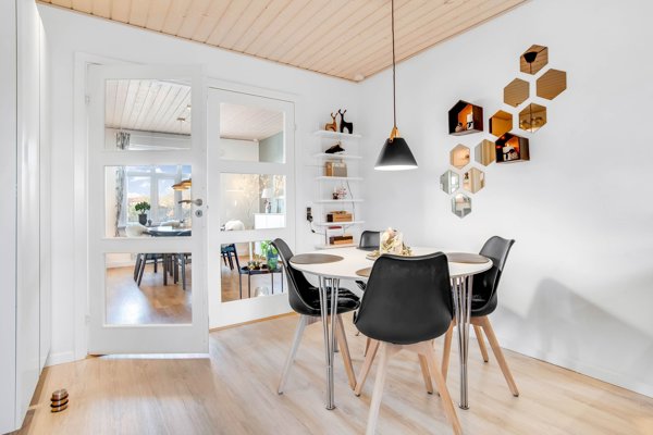 Indenfor bydes I velkommen af en rummelig entré med god plads til overtøj og sko. Stilen er lys, rolig og gennemført med moderne materialevalg, trægulve og listelofter, der skaber en indbydende atmosfære fra første skridt.