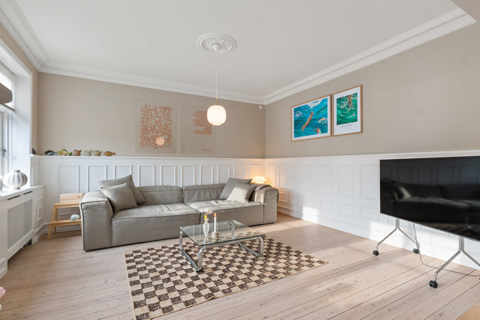 På Torvegade 94, 1. i Esbjerg udbydes denne stemningsfulde ideelle anpart med hele 146 etagemeter fordelt på to velindrettede etager. Her får I en bolig, der kombinerer klassiske kvaliteter med gode opdateringer og en planløsning, som giver mange anvendelsesmuligheder til både parret, den lille familie eller jer, der ønsker ekstra plads til hjemmearbejde, gæster eller hobby.