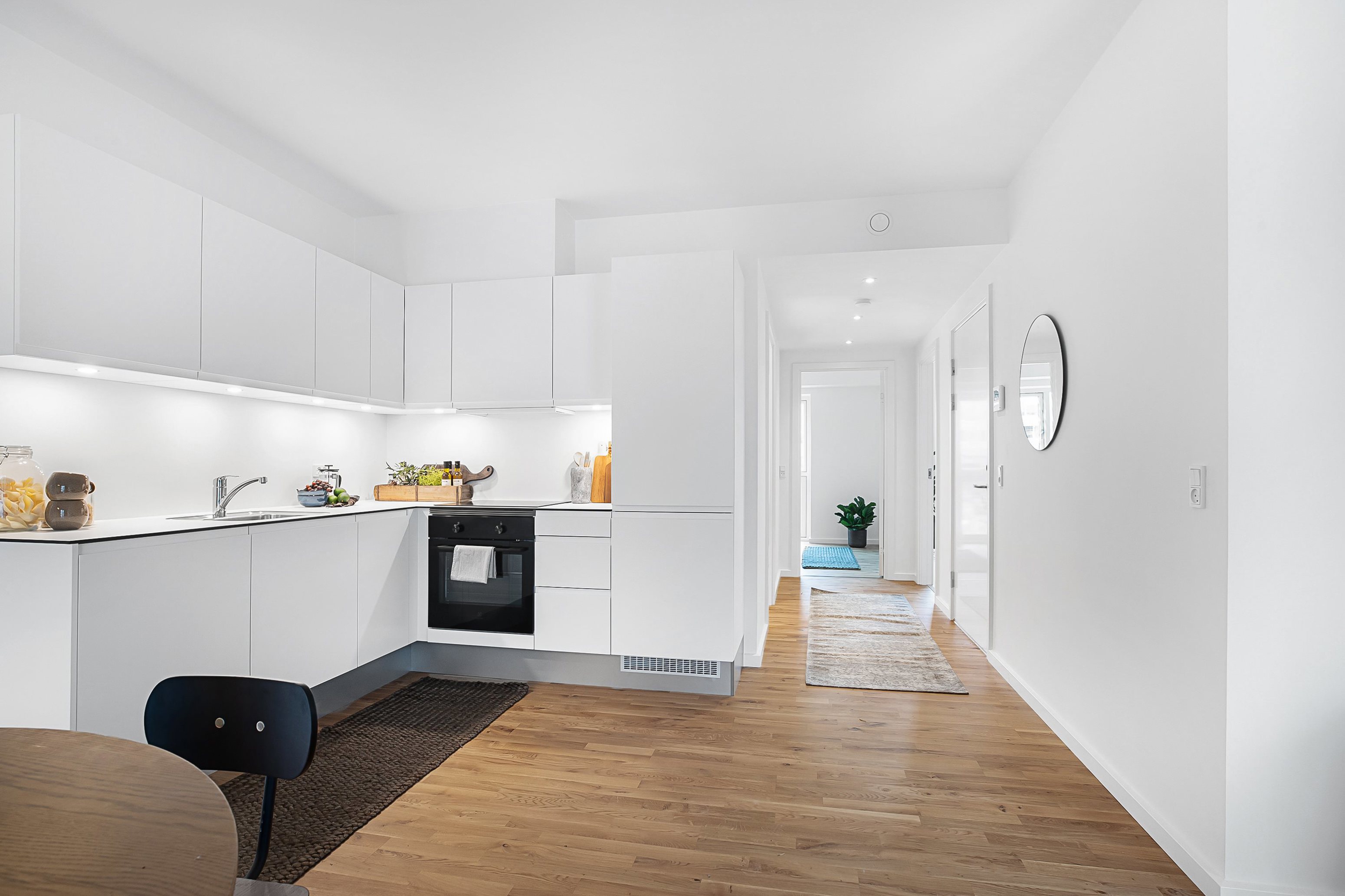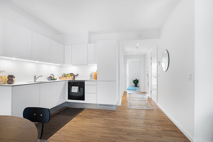 Lyse boliger med altan eller terrasseBoligerne er tegnet med fokus på lys, funktionalitet og fleksible indretningsmuligheder. Materialerne er lyse og moderne, og køkkenerne er fra Invita. Alle boliger har enten altan eller terrasse, og enkelte har privat tagterrasse.
