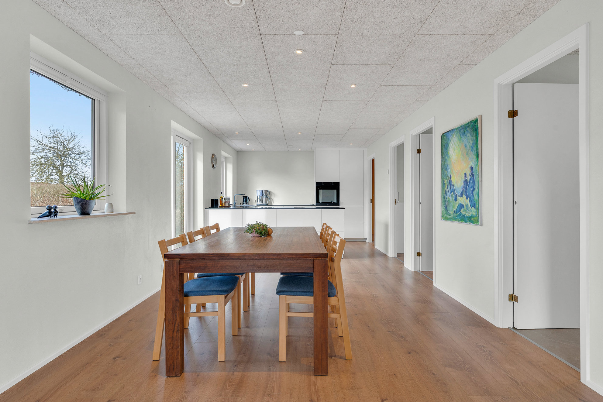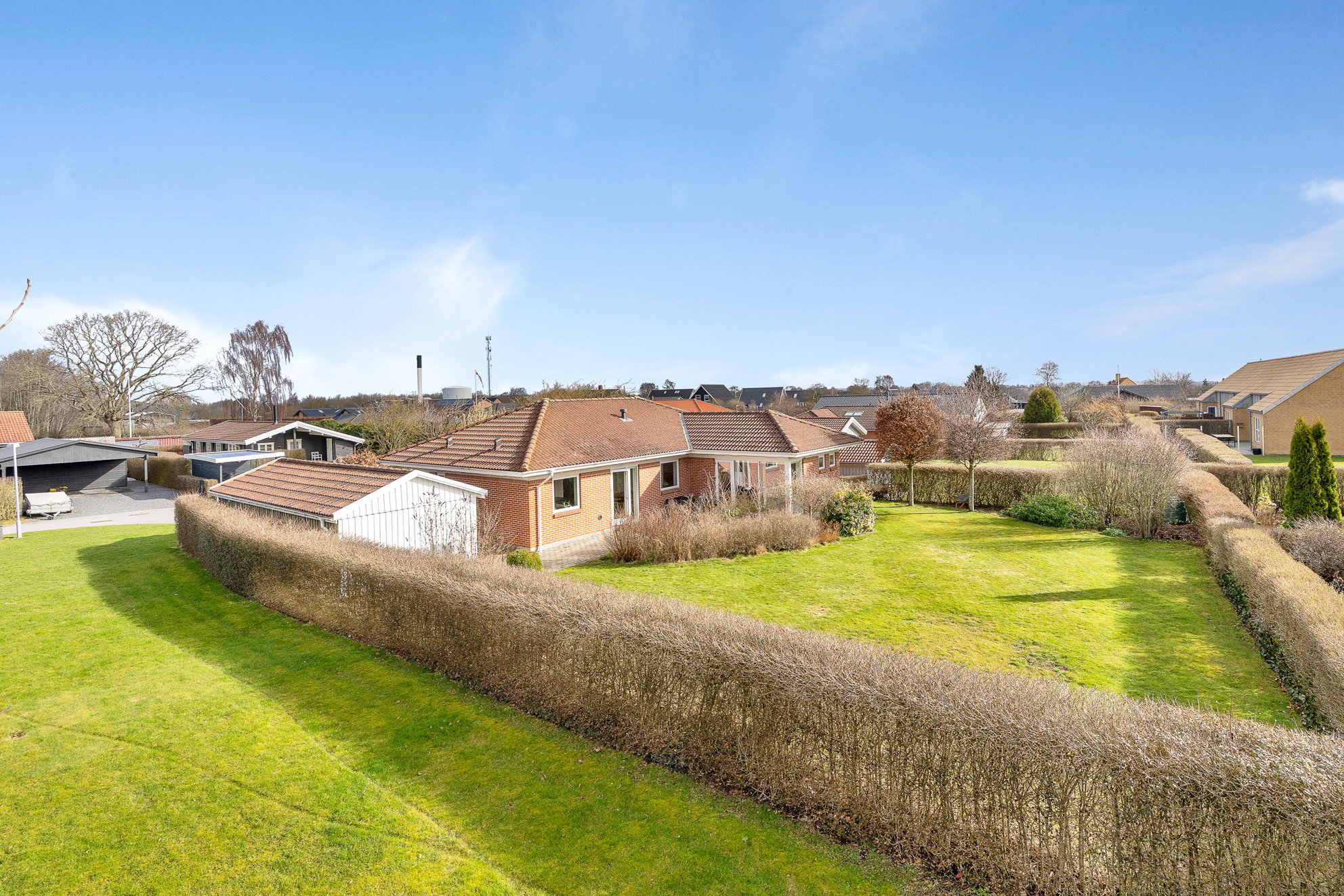 De store, grønne zoner smelter sammen med kystens åbne horisont, så du hurtigt kan skifte parken ud med en tur langs vandet. Strandpromenader, kyststier og rolige villaveje skaber rammerne for et aktivt hverdagsliv tæt på naturen.