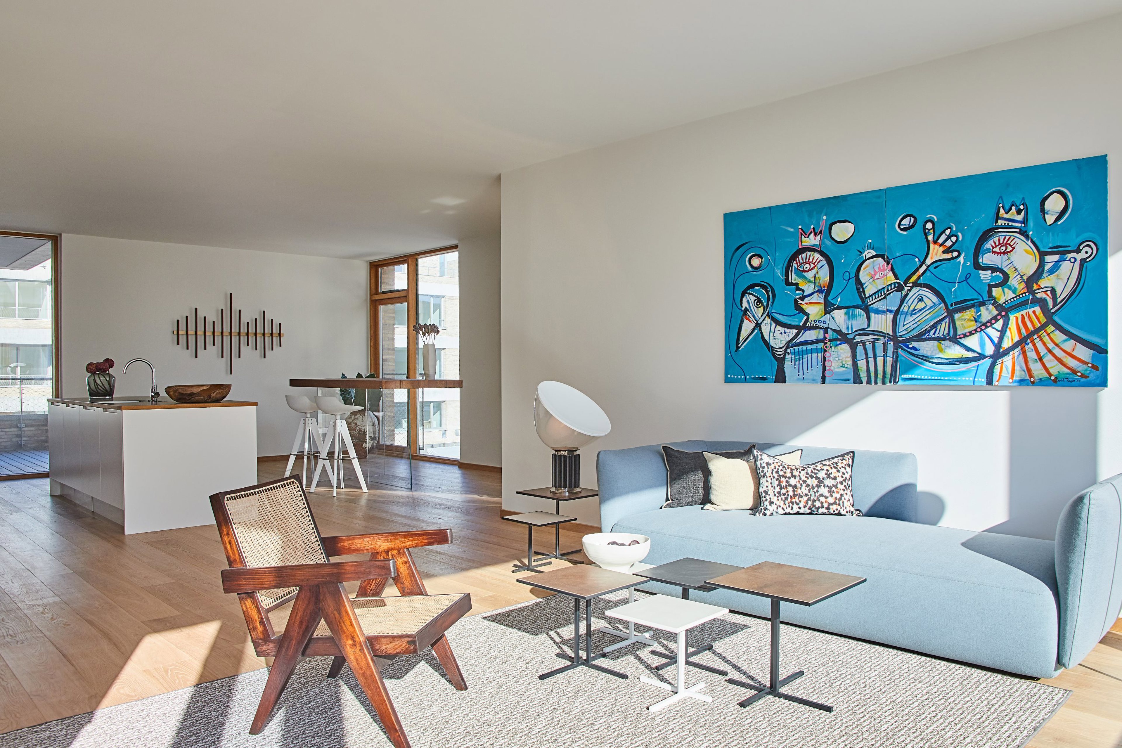 Boligen byder på et stort, åbent opholdsrum, hvor køkken og stue smelter sammen i et lyst og indbydende miljø. Det elegante køkken er centralt placeret med god arbejdsplads og spiseområde – ideelt til både hverdag og gæstebesøg. Fra opholdsrummet er der direkte udgang til altanen, som fungerer som en naturlig forlængelse af boligen i sommerhalvåret.